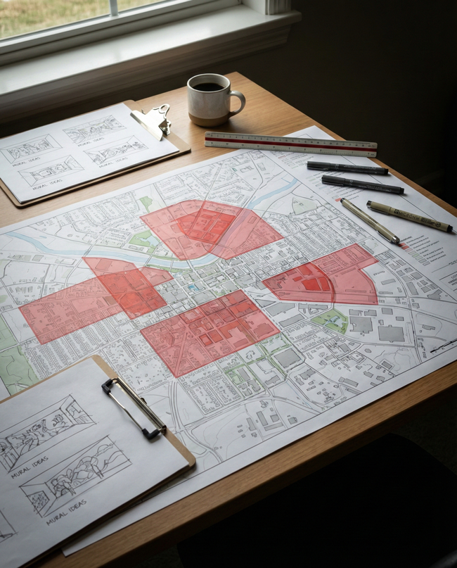 It is structured environmental storytelling designed to transform public spaces into meaningful visual experiences.